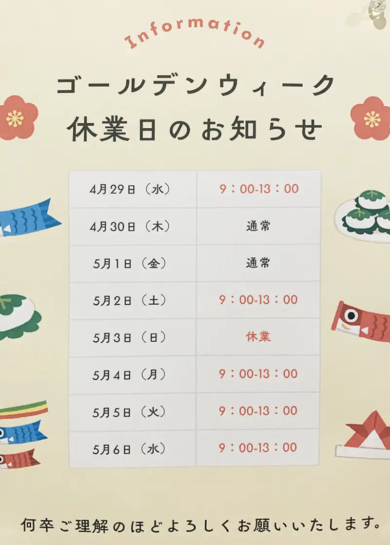 いつもご来院頂き、誠にありがとうございます。